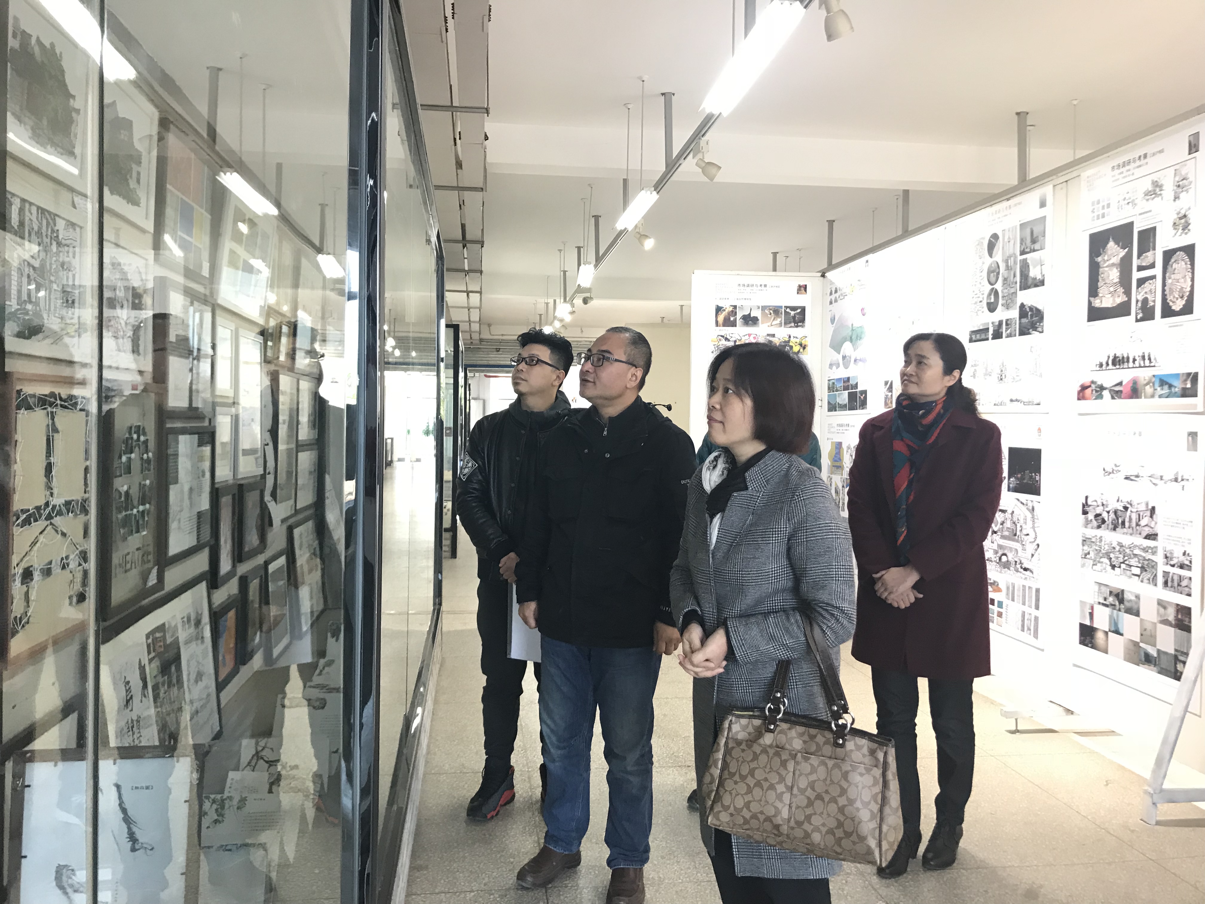 随后,工业设计系负责人、办公室和教研室主任等陪同吴总会计师参观了工业设计系近期举办的“中国文化创新设计工作坊”及系列课程教学汇报展。吴总高度肯定了工业设计系近一年来的教学与国内外学术交流成果,希望今后继续营造良好的教研氛围,力争取得新的成绩。