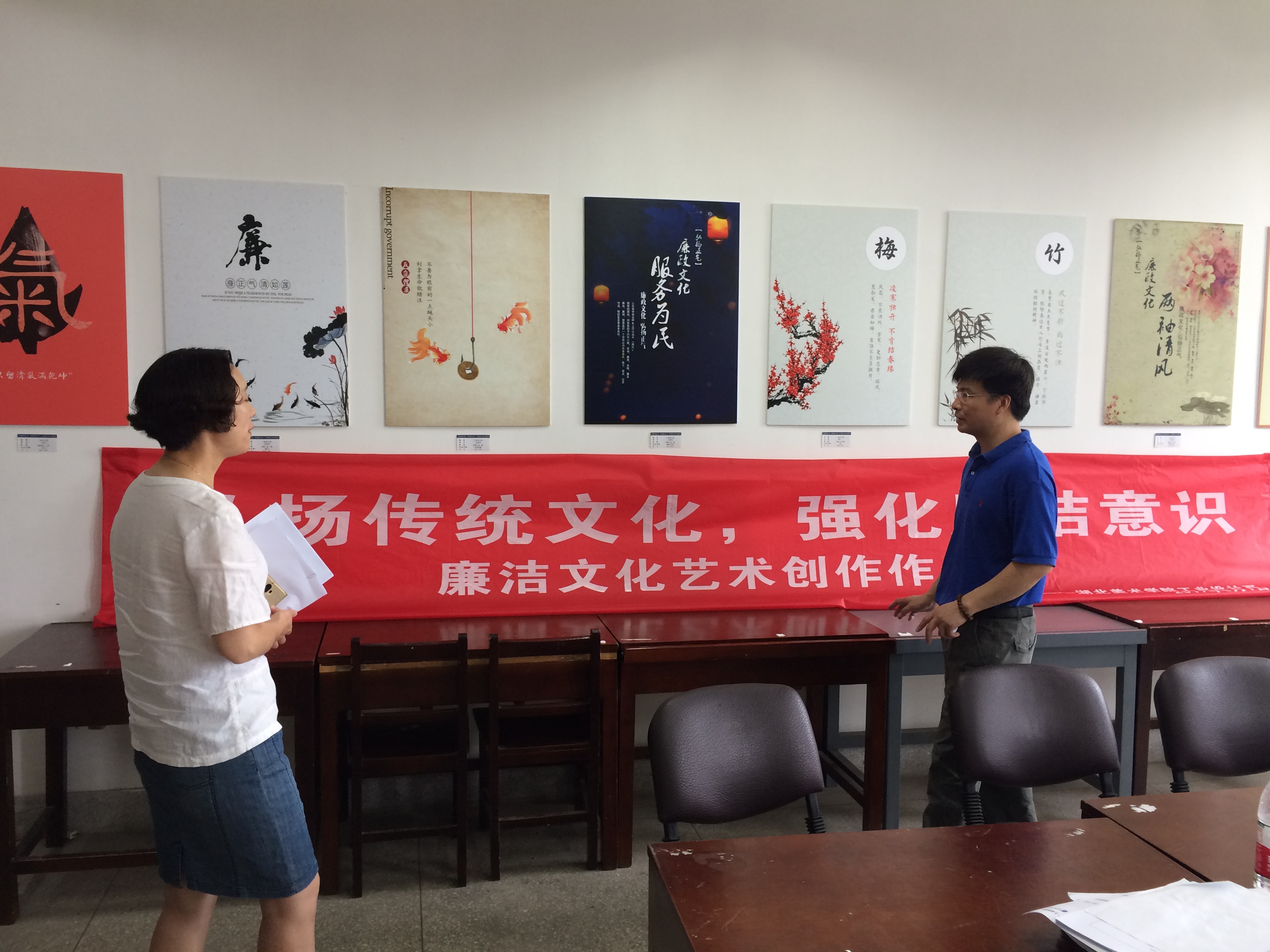 随后,窦书记在系总支副书记汪早林的邀请下观看了我系“弘扬传统文化,强化廉洁意识”艺术创作大赛展览。