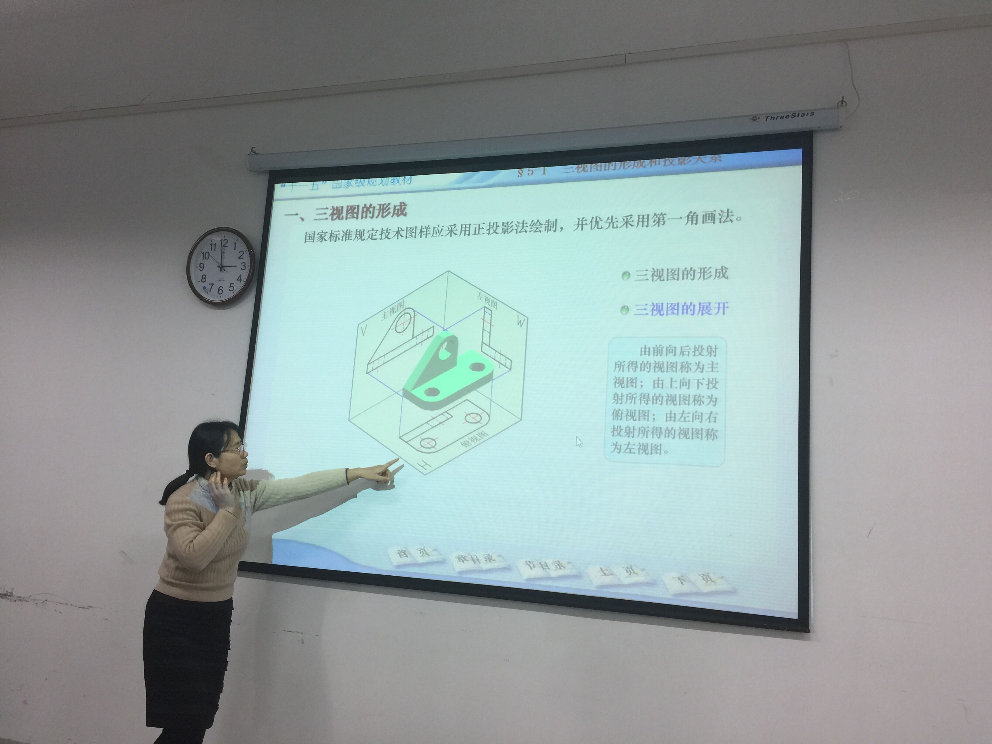讲座中,刘源教授为同学们操作soildworks工程软件,针对工程制图中的三视图视角问题进行了详细的讲解,并分析其软件与工程制图视角问题的差异性,使在座的毕业班员工们了解在实际操作工程软件中三视图导出问题,尺寸问题,比例问题及标注问题。
