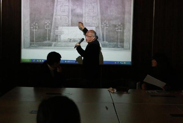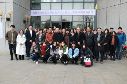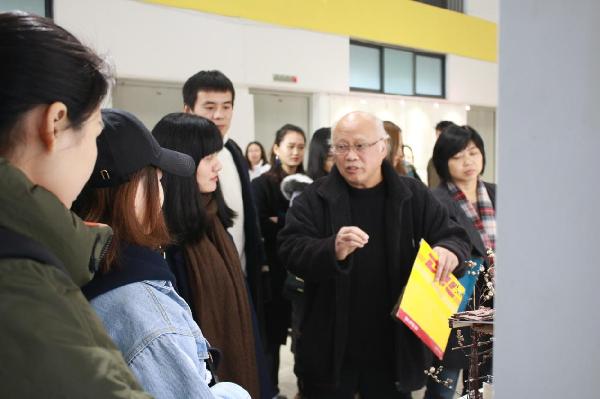 舞美学会田会长与同学们交流讨论作品